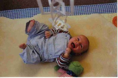 mit 2 Monaten und seinem Freund dem gruenen Hugo!